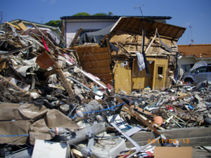 木造家屋の多くが津波に流され、日和山のふもとで瓦礫と化した。