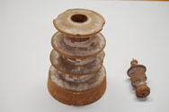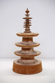 | 奈良時代の女帝、称徳天皇(718-770)の発願により製作された百万基の小塔およびその中に納められた経をいう。経は、制作年代が明確なものとしては世界最古の印刷物と言われている。 百万塔とは、中に『陀羅尼経(だらにきょう)』を納めた木造の小塔のことを言い、宝亀元(770)年4月、10か所の大きなお寺に分置されたと伝わっている。現在は法隆寺にのみ、塔身4万5755基、相輪2万6054点が保存されている。本館所蔵の木製小塔は構造は、3層の屋蓋(おくがい)と基台からなる塔身部と相輪部に分解することができる。