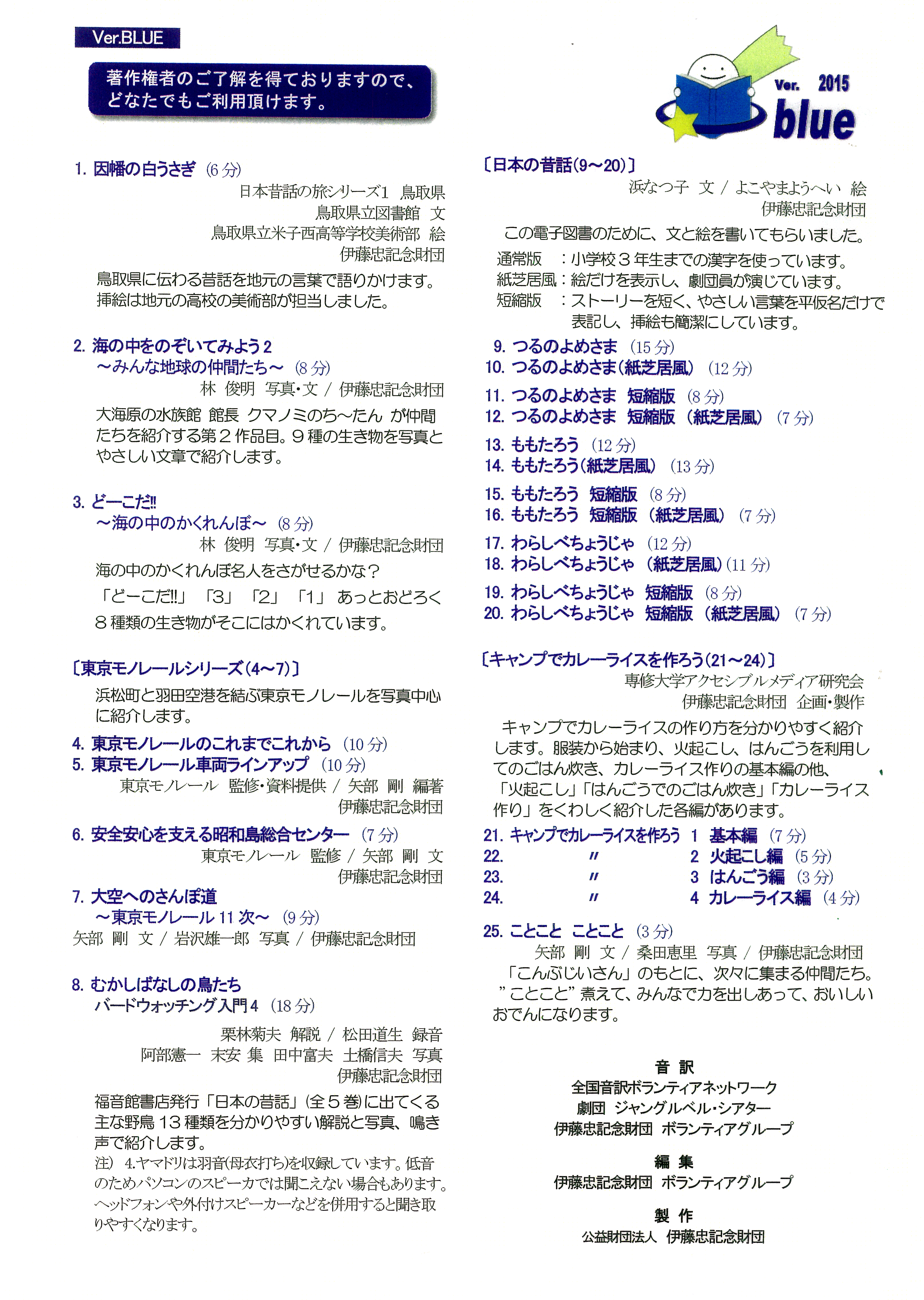 ・2016.1.20 視覚障がい者の為の録音図書(デイジー)の貸出をしております。このデイジー図書のうち著作権者の許諾を得て作成された「わいわい文庫~マルチメディアデイジーVer..blue 2015」 の体験コーナーを設置しました。障害の有無に関係なく視聴できますので、是非、ご体験ください。
